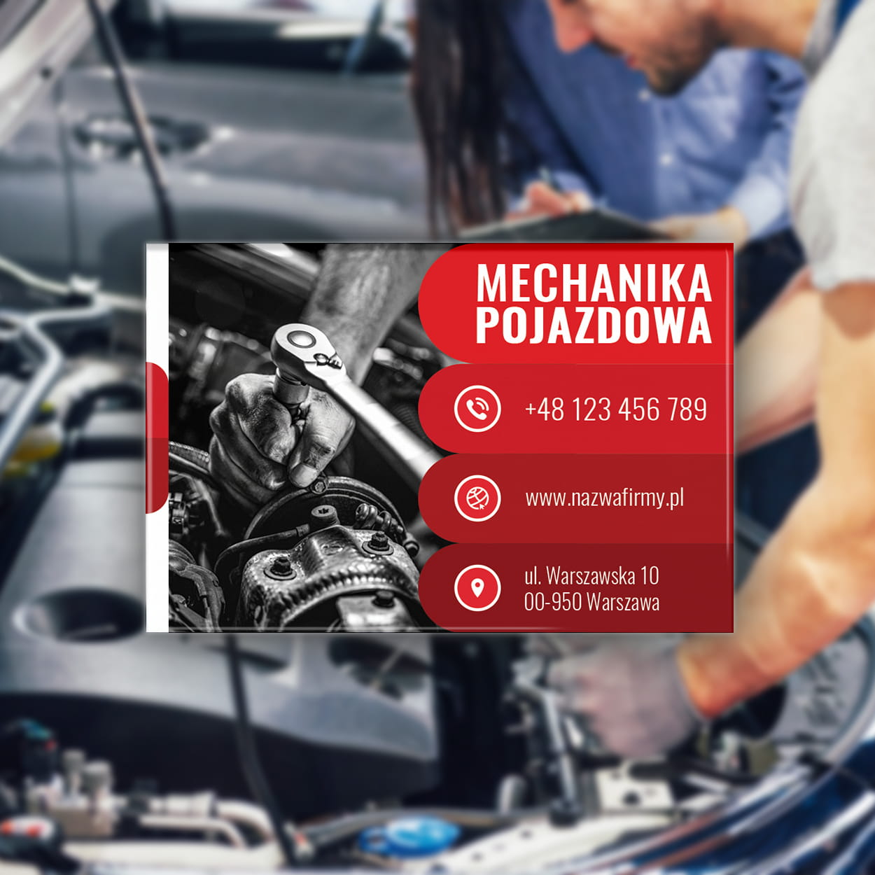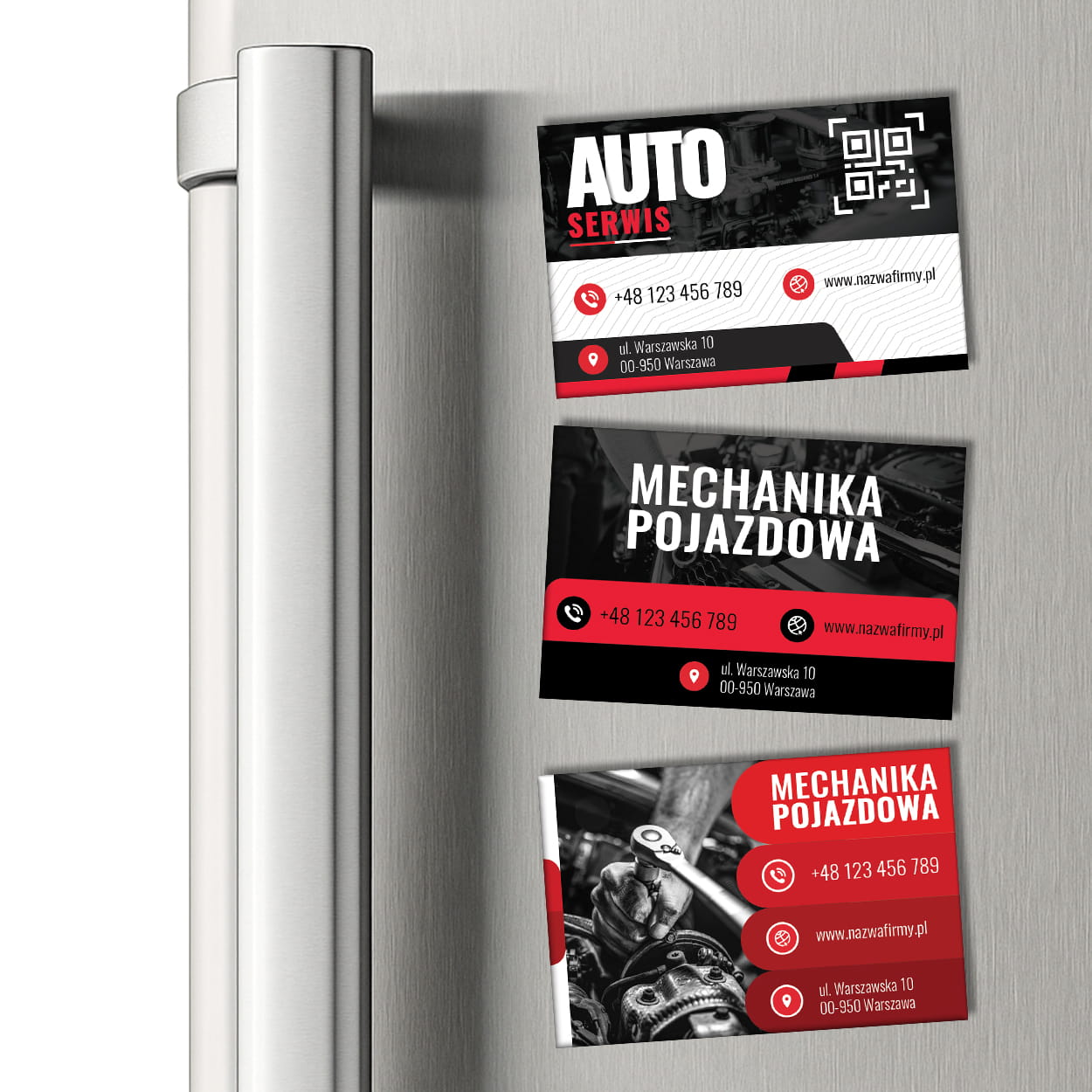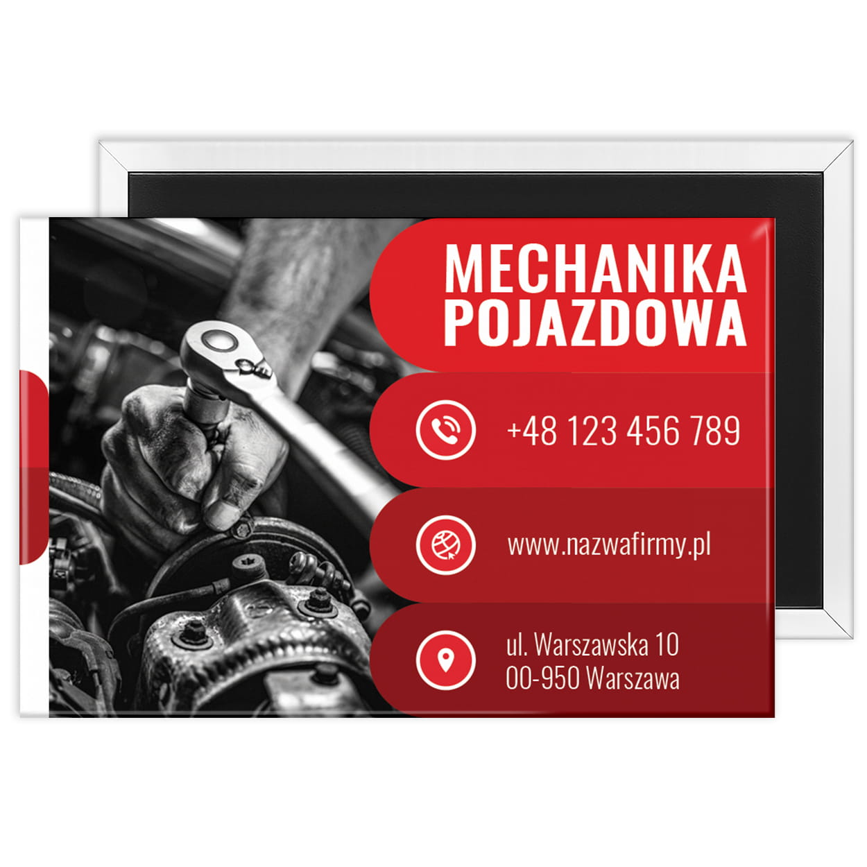 Funkcjonalna wizytówka w formie magnesu, która przypomina klientom o szybkim kontakcie z mechanikiem samochodowym i dbałości o sprawność pojazdu.