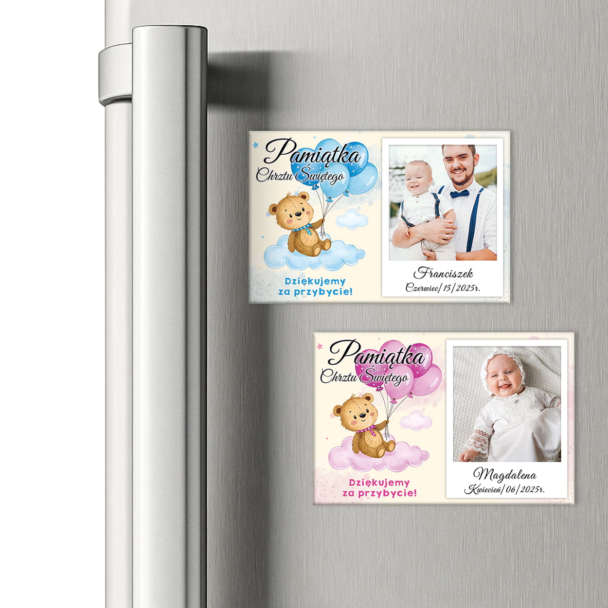 Magnes – Pamiątka Chrztu Świętego ze zdjęciem „Różowy Miś”