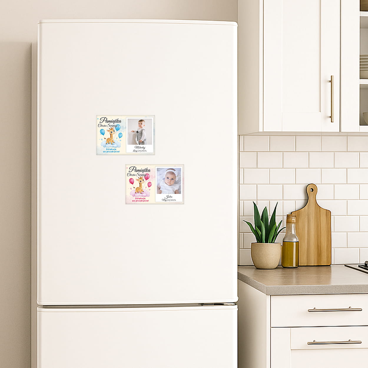 Magnes – Pamiątka Chrztu Świętego ze zdjęciem „Żyrafa i Różowe Baloniki”