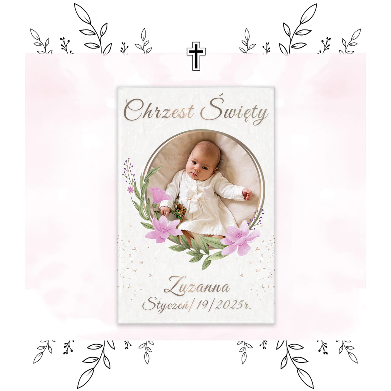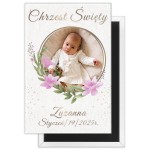 Magnes – Pamiątka Chrztu Świętego ze zdjęciem i tekstem „Pudrowe Kwiaty”