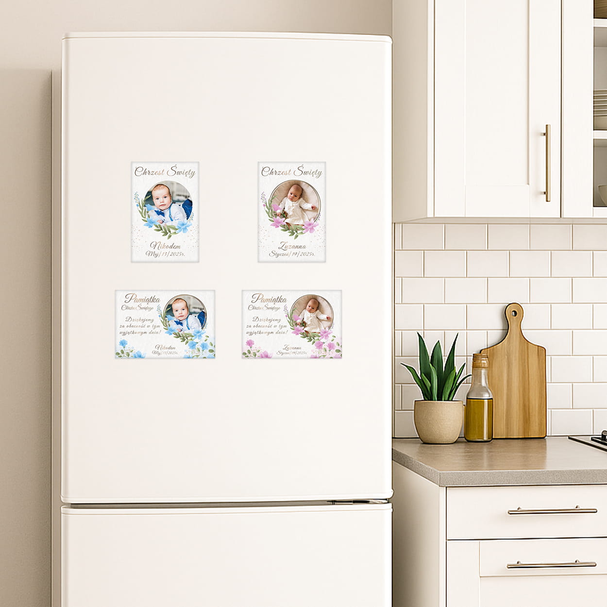 - Piękna dekoracja na lodówkę lub tablicę magnetyczną, która codziennie przypomina o uroczystym dniu.