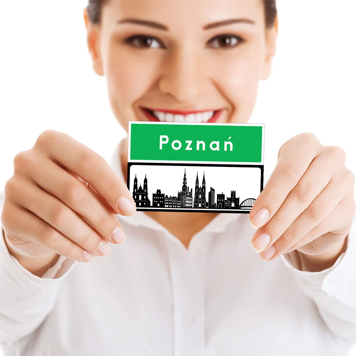 Magnes Turystyczny z panoramą miasta – znak Poznań