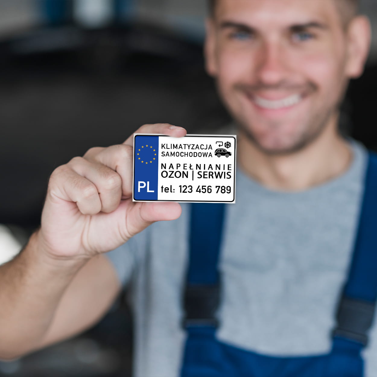 Praktyczny gadżet reklamowy – idealny sposób, aby zaprezentować nazwę firmy, numer telefonu lub adres strony internetowej w oryginalnej, przyciągającej wzrok formie tablicy rejestracyjnej.