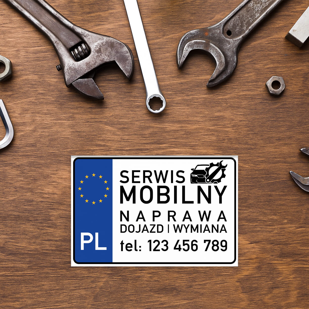 Praktyczny gadżet reklamowy – idealny sposób, aby zaprezentować nazwę firmy, numer telefonu lub adres strony internetowej w oryginalnej, przyciągającej wzrok formie tablicy rejestracyjnej.