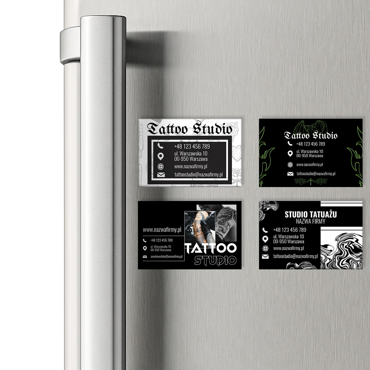 Wyrazista wizytówka w formie magnesu, która zostaje z klientem na długo i przypomina o kolejnym tatuażu w Twoim studio.