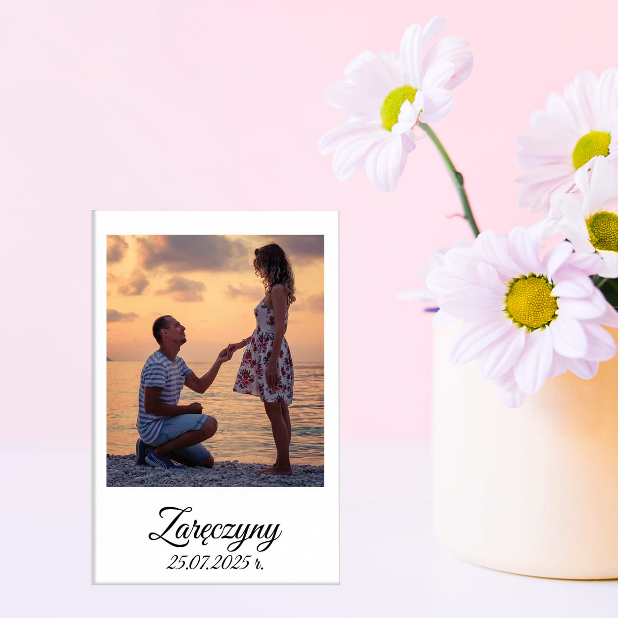 Magnes polaroid ze zdjęciem – wspólne chwile „Zaręczyny”