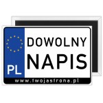 Magnes z dowolnym napisem w formie tablicy rejestracyjnej z nazwą strony