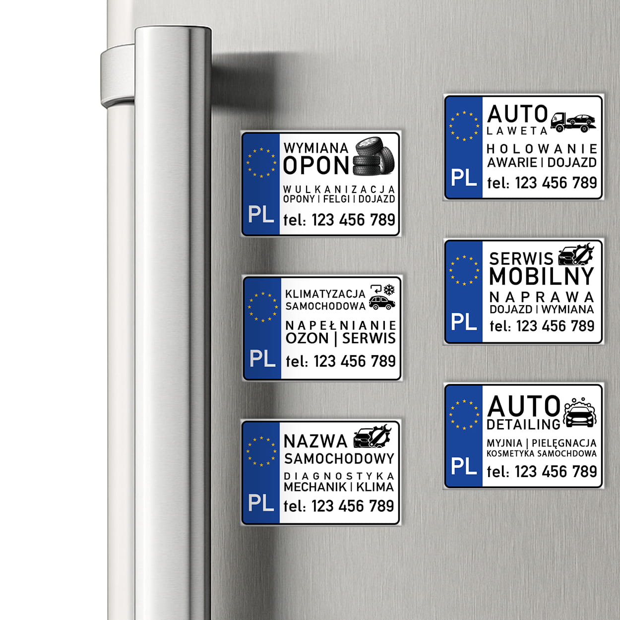 Magnesy z dowolnym napisem na tablicy rejestracyjnej